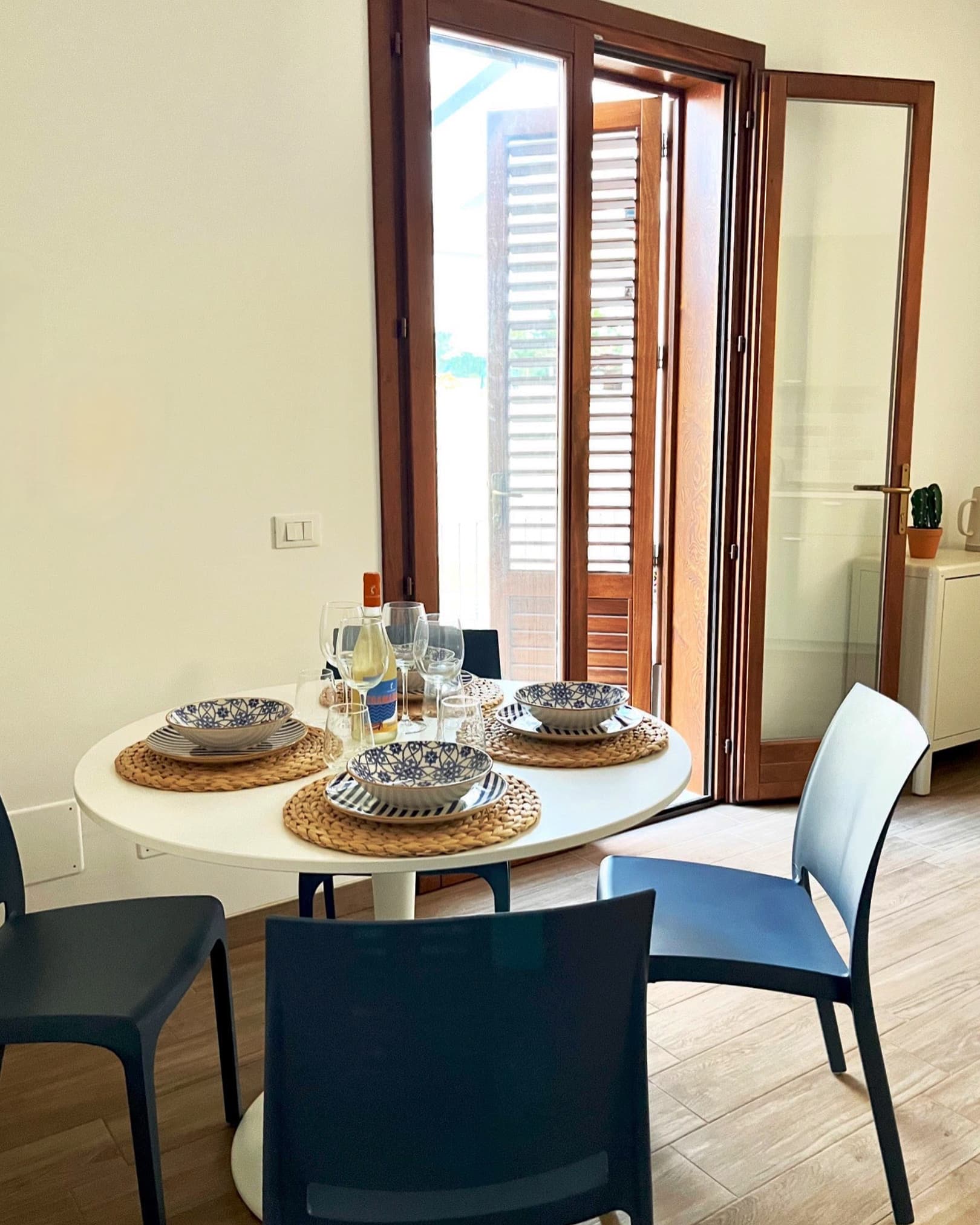 Appartamento luminoso (max 4 ospiti) con camera matrimoniale, soggiorno con cucina open space, bagno con doccia walk-in e finestra. Domotica semplice per luci e clima, ideale per lavoro in remoto o vacanze al mare.